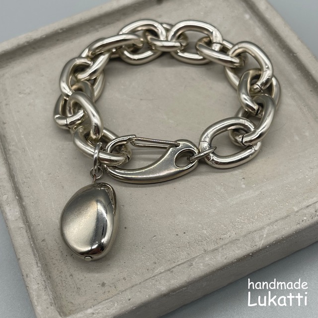 Lukatti シルバーボールチェーンゴールドタグブレスレット