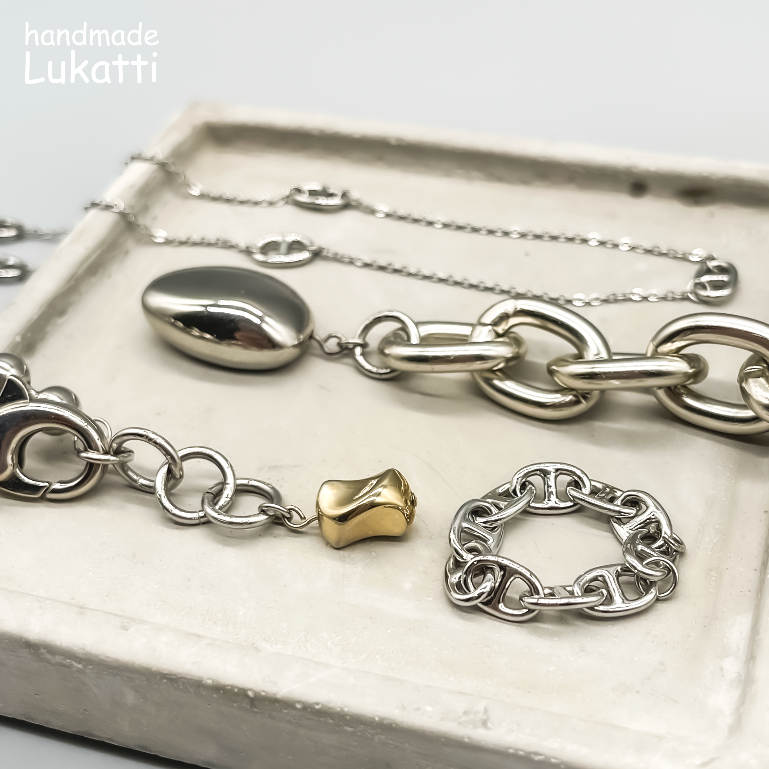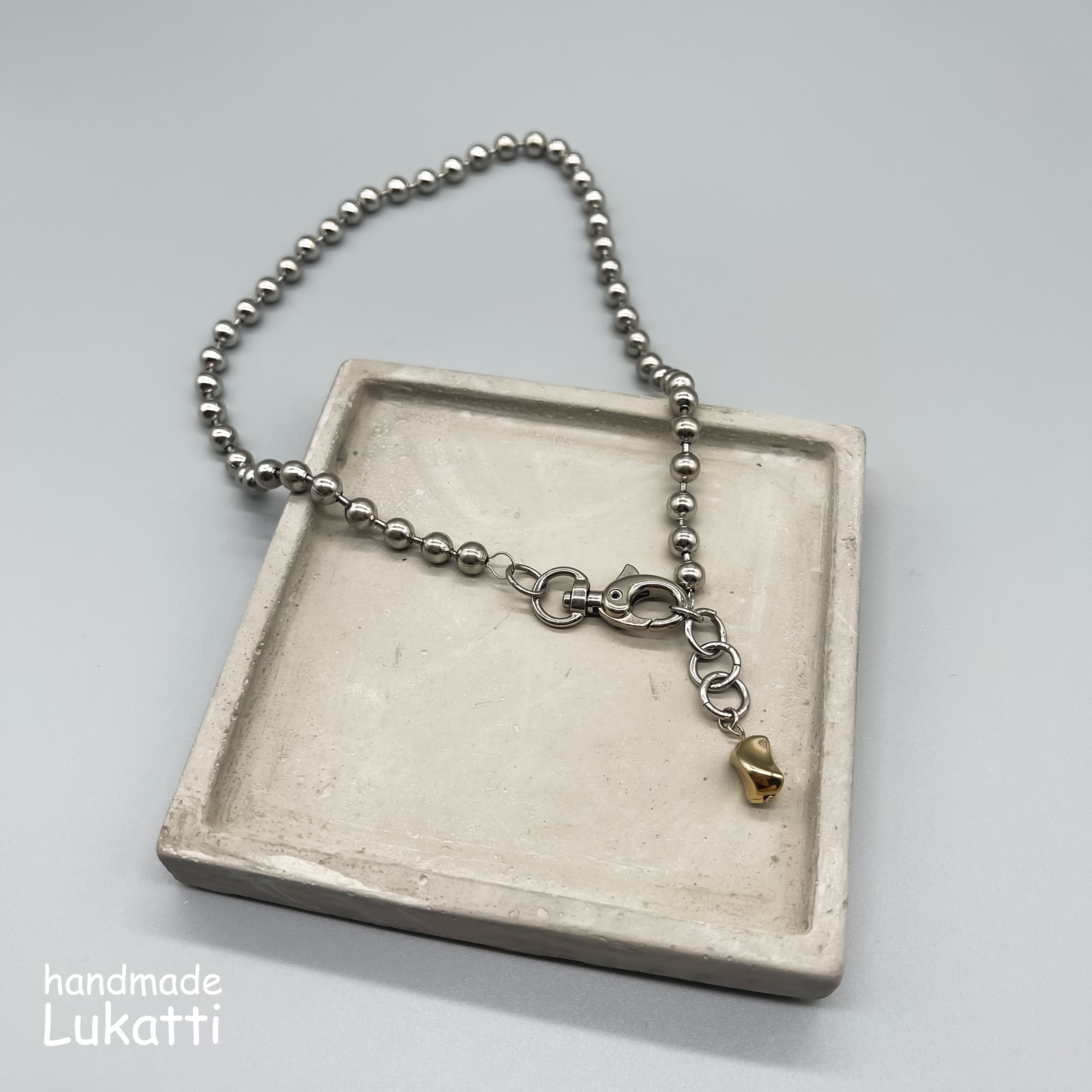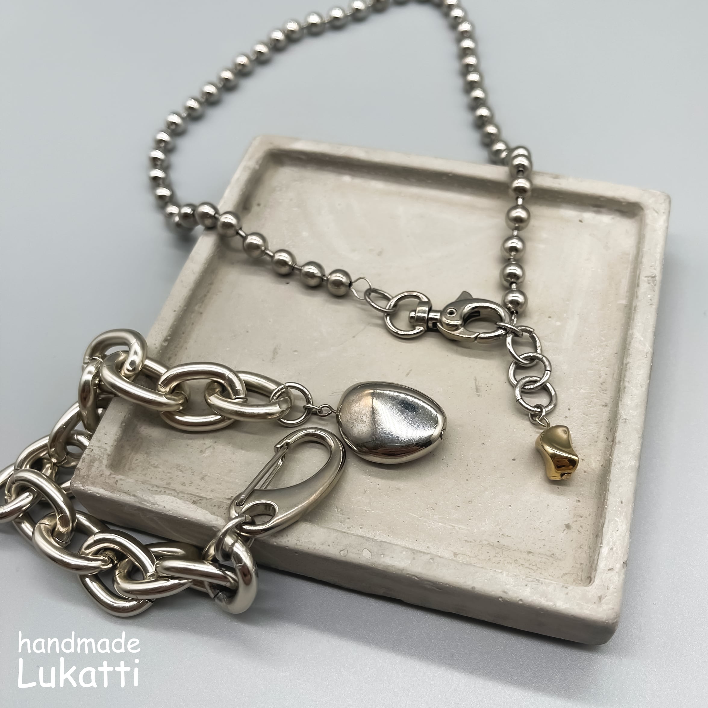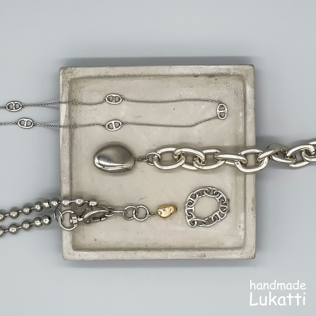 Lukatti シルバーチェーンゴールドタグネックレス